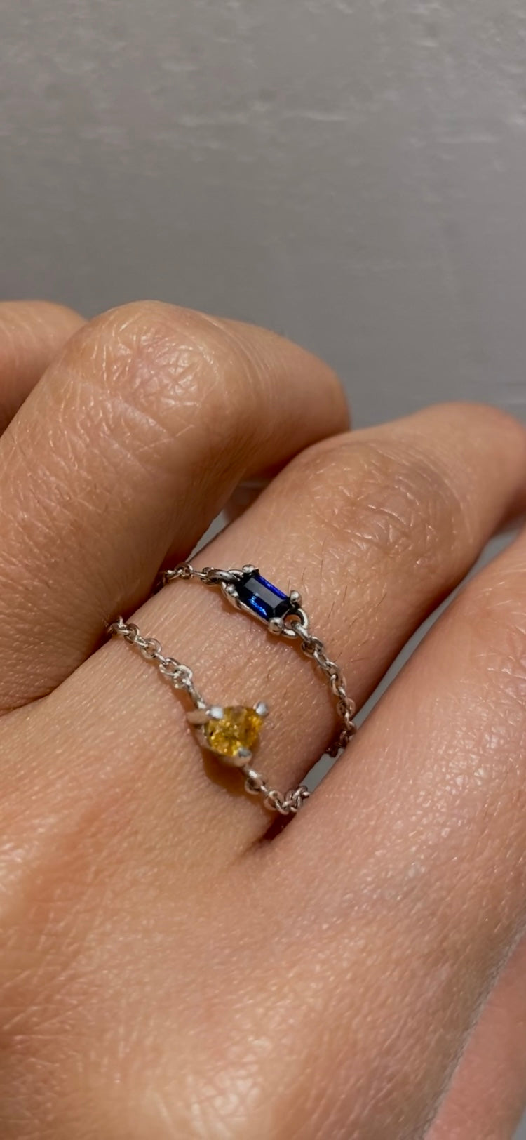 The Emily ring is sophisticated with an edge. Handcrafted in silver with a sleek chain design, it’s set with your choice of a striking blue sapphire or a vibrant yellow sapphire, each adding a bold touch of elegance. Designed to be worn every day, this versatile piece complements a casual look, lifts any outfit, or shines as the perfect accessory for a night out, bringing a subtle yet edgy statement to your style.