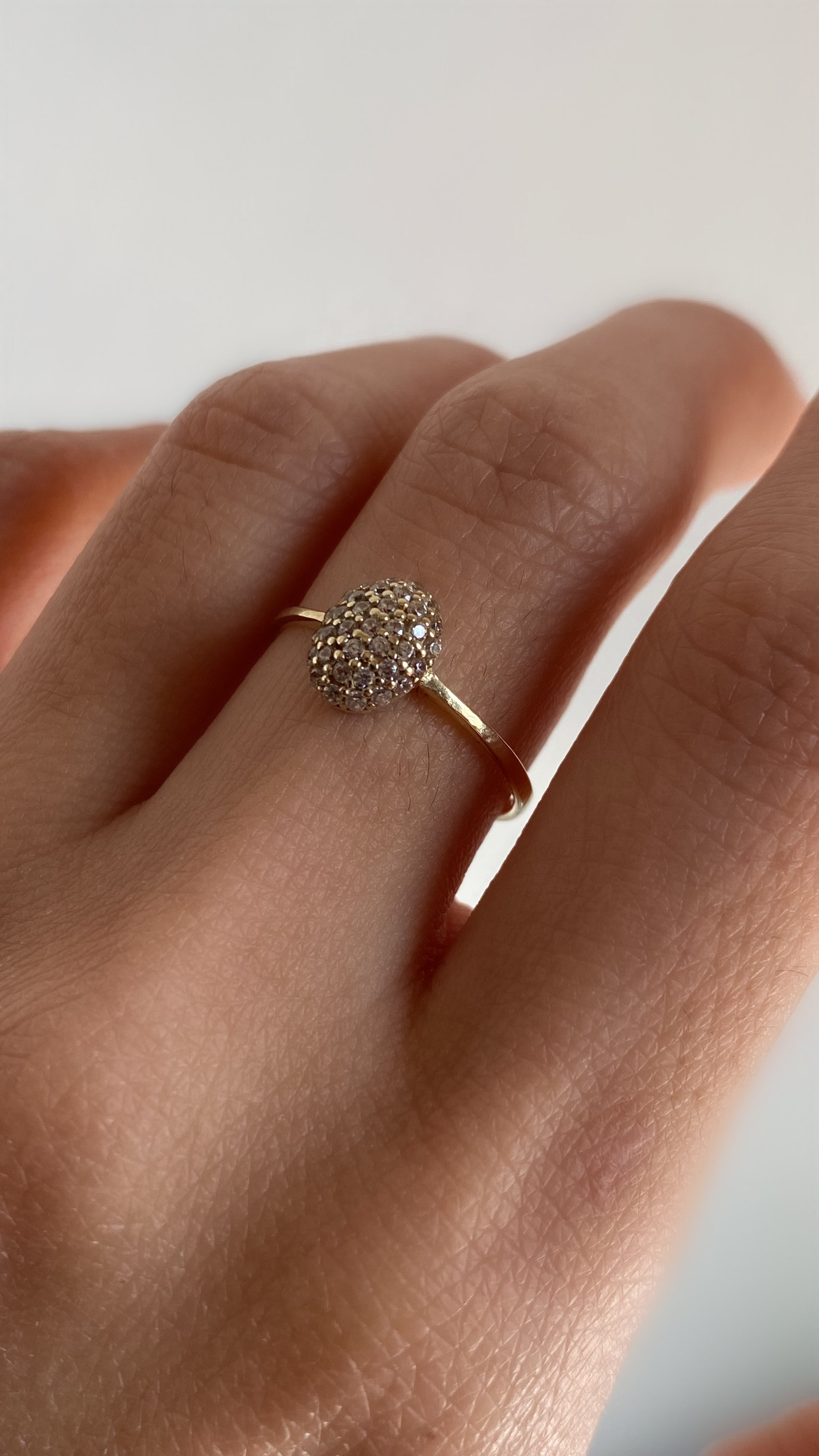 This ring features a beautiful oval-cut center, meticulously crafted from high quality rhinestones, set against a sleek 10k yellow gold band. Each piece is made to order and handcrafted with care, ensuring every detail is thoughtfully executed.