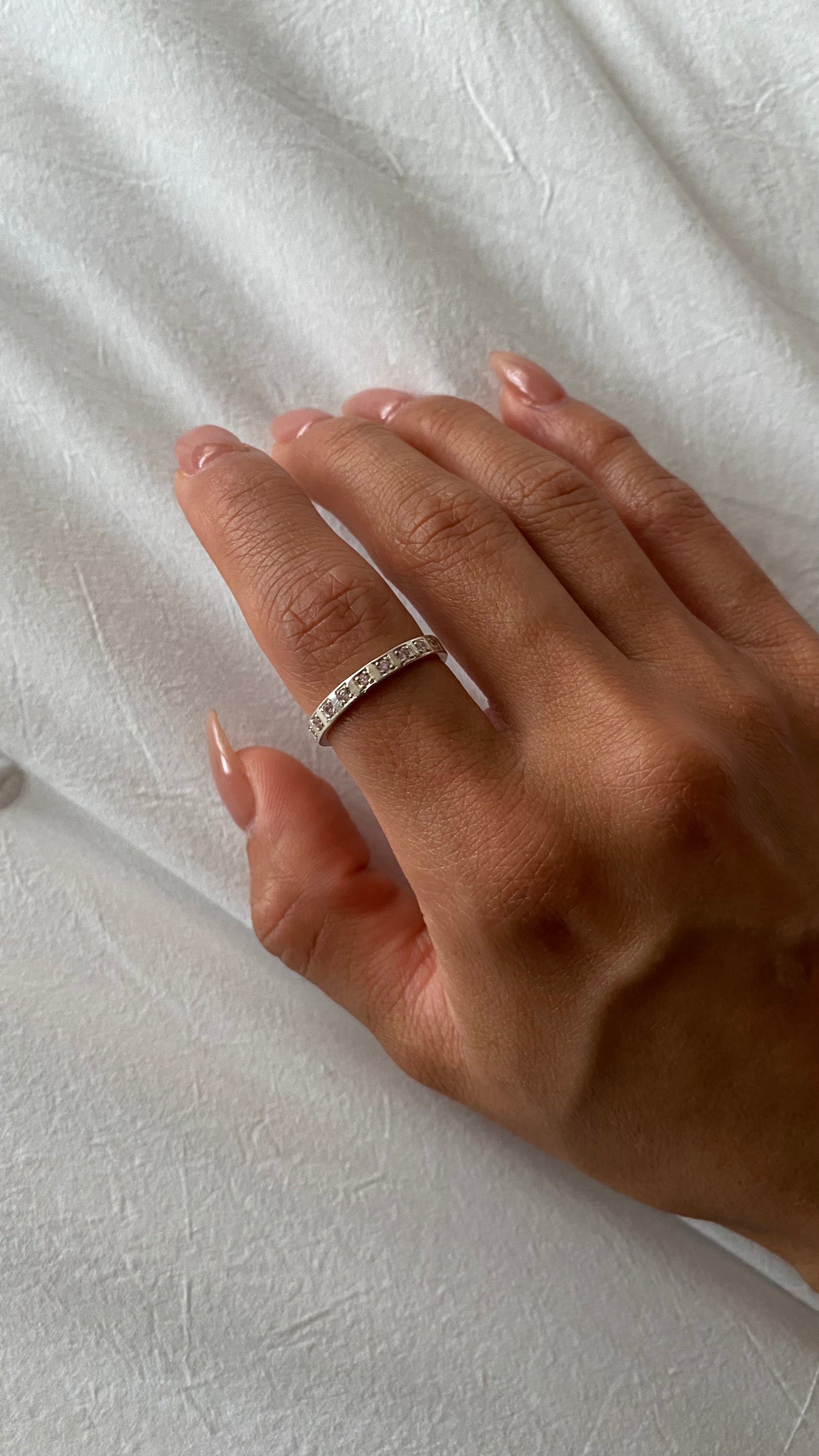 Handcrafted in .950 silver and set with radiant pink zirconias, Yarin is bold by design: clean lines, sharp shine, and a silhouette that speaks with confidence.